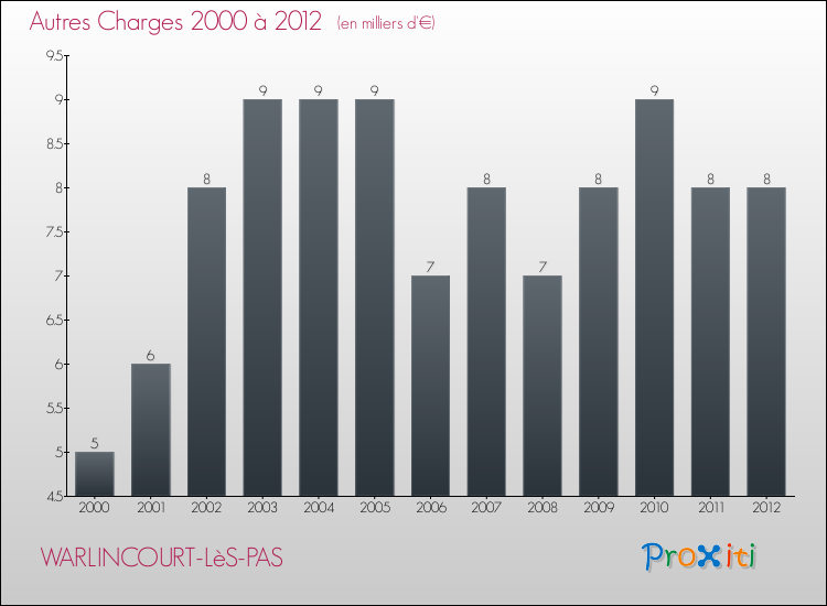 En 2012, les charges de fonctionnement de la commune de Warlincourt-lès-Pas étaient de : 75 000 € décomposées comme suit :