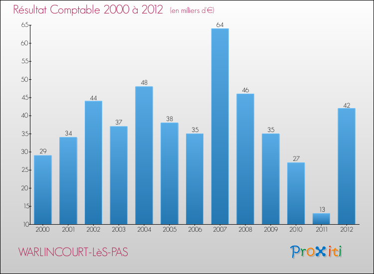 Le résultat comptable de la commune de Warlincourt-lès-Pas s'établissait ainsi à : + 42 000 € fin 2012.