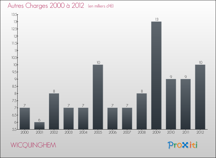 En 2012, les charges de fonctionnement de la commune de Wicquinghem étaient de : 69 000 € décomposées comme suit :