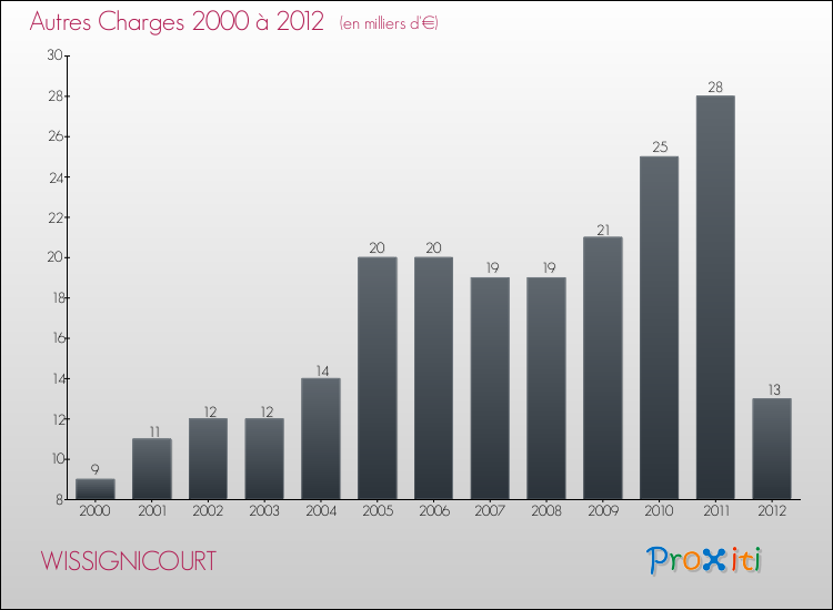En 2012, les charges de fonctionnement de la commune de Wissignicourt étaient de : 56 000 € décomposées comme suit :