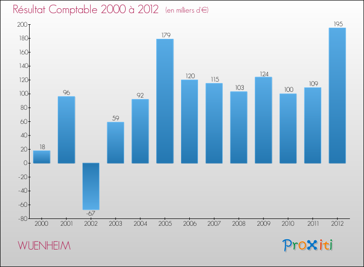 Le résultat comptable de la commune de Wuenheim s'établissait ainsi à : + 195 000 € fin 2012.