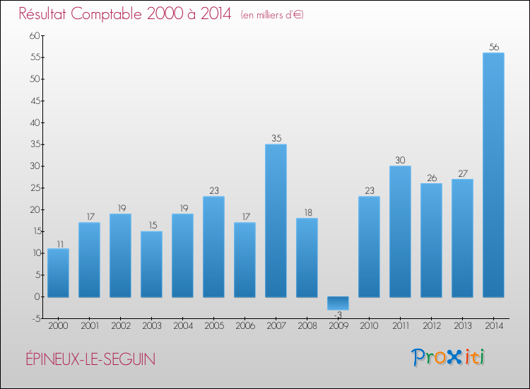 Le résultat comptable de la commune de Épineux-le-Seguin s'établissait ainsi à : + 56 000 € fin 2014.