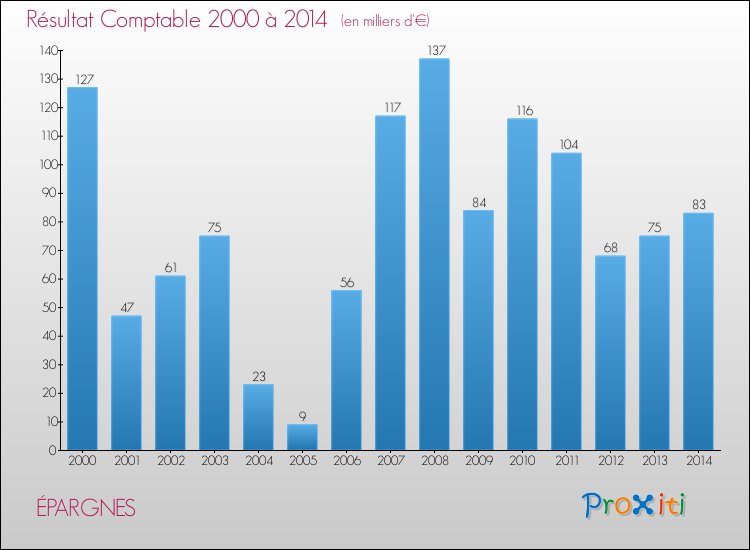 Le résultat comptable de la commune de Épargnes s'établissait ainsi à : + 83 000 € fin 2014.