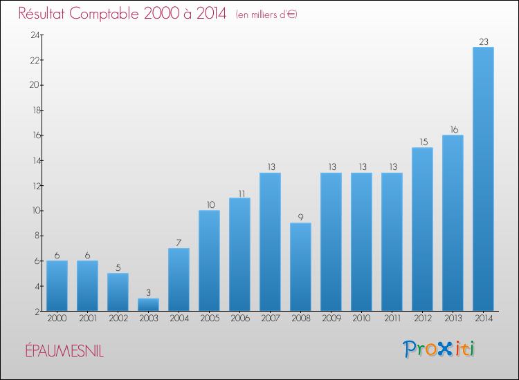 Le résultat comptable de la commune de Épaumesnil s'établissait ainsi à : + 23 000 € fin 2014.