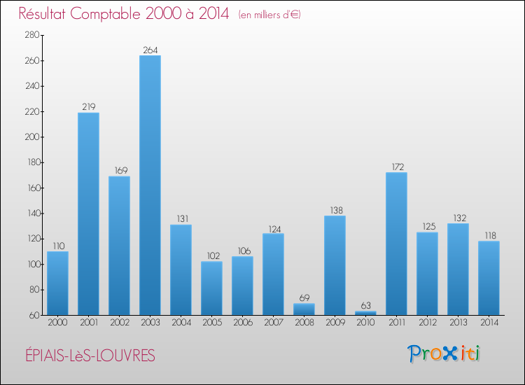 Le résultat comptable de la commune de Épiais-lès-Louvres s'établissait ainsi à : + 118 000 € fin 2014.
