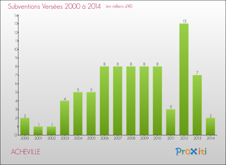 En 2014, à Acheville, ce budget est en baisse de 12.22 % par rapport à 2013.