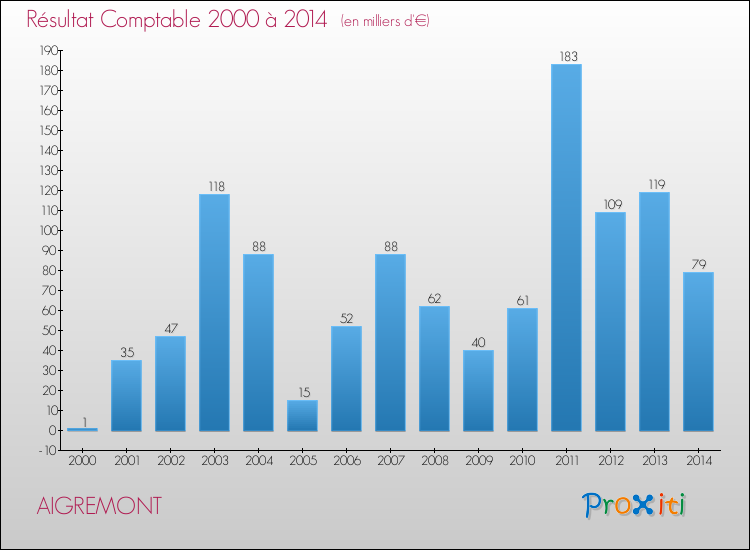 Le résultat comptable de la commune de Aigremont s'établissait ainsi à : + 79 000 € fin 2014.