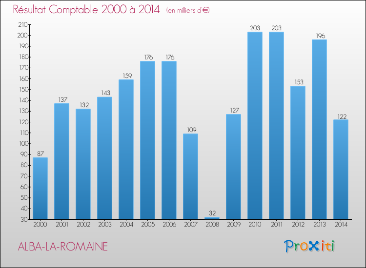 Evolution du résultat comptable pour ALBA-LA-ROMAINE de 2000 à 2014