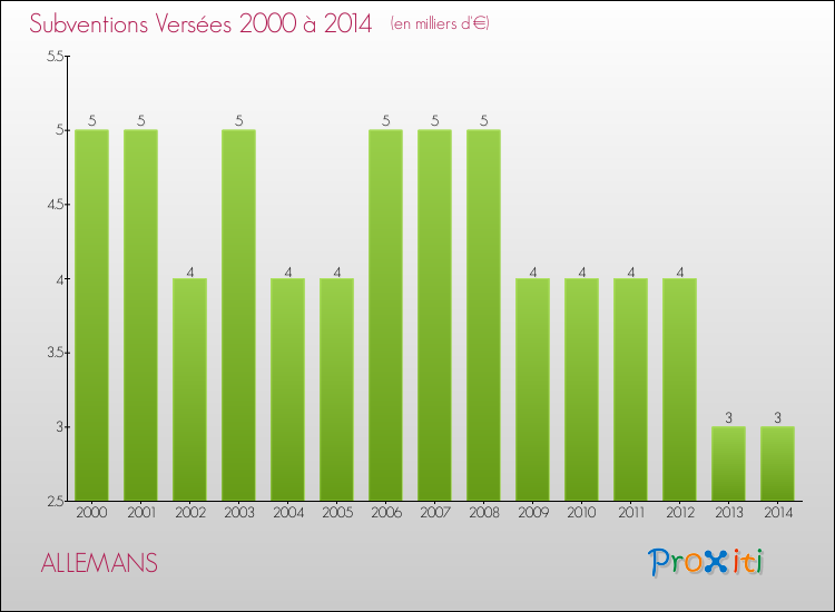 En 2014, à Allemans, ce budget est en augmentation de 6.43 % par rapport à 2013.