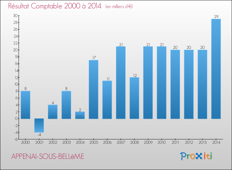 Le résultat comptable de la commune de Appenai-sous-Bellême s'établissait ainsi à : + 29 000 € fin 2014.