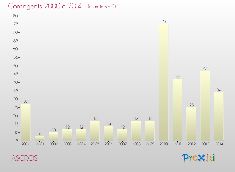 En 2014, à Ascros, ce budget est en baisse de 2.9 % par rapport à 2013.
