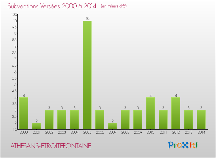 En 2014, à Athesans-Étroitefontaine, ce budget est en baisse de 18.64 % par rapport à 2013.
