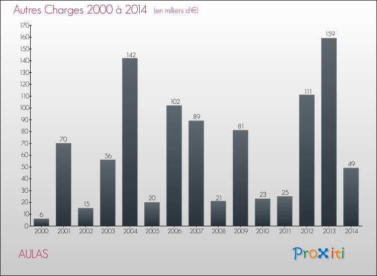 En 2014, à Aulas, ce budget est en baisse de 19.96 % par rapport à 2013.