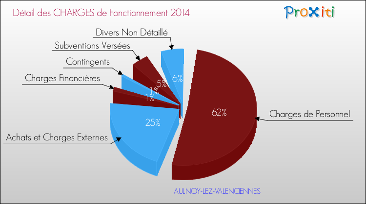 En 2014, les charges de fonctionnement de la commune de Aulnoy-lez-Valenciennes étaient de : 6 080 000 €