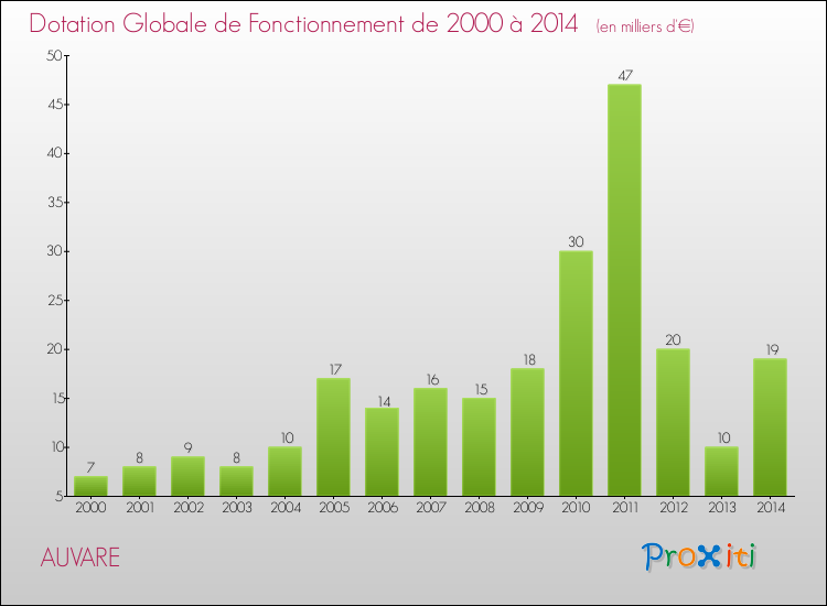 En 2014, à Auvare, ce budget est en baisse de 1.11 % par rapport à 2013.