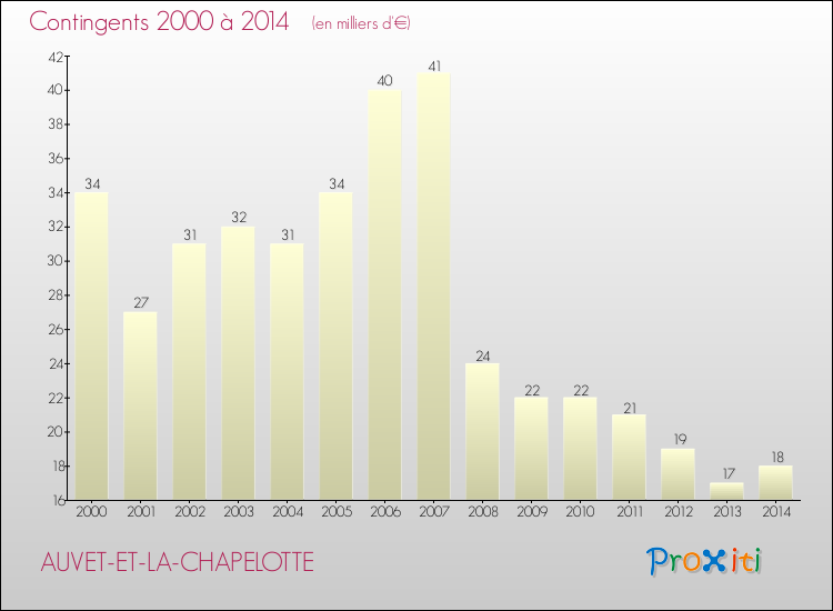 En 2014, à Auvet-et-la-Chapelotte, ce budget est en baisse de 6.01 % par rapport à 2013.