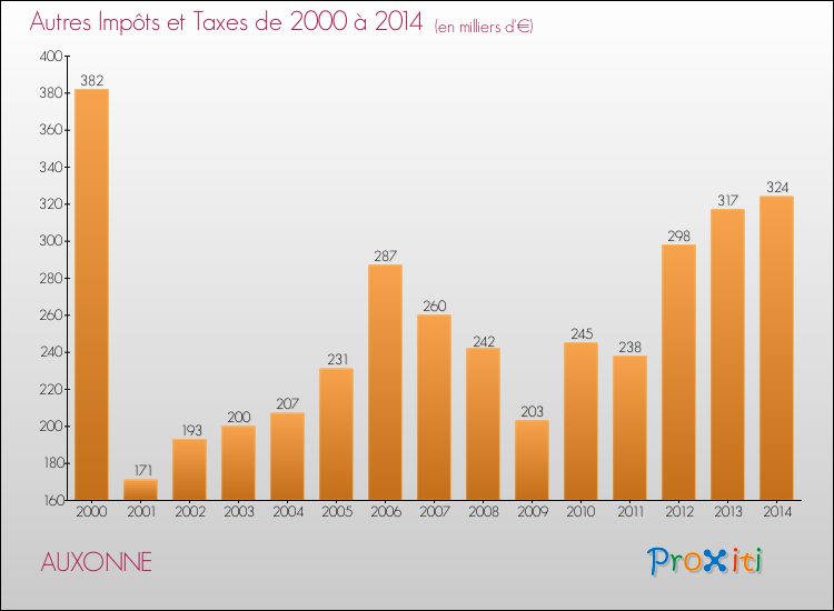 En 2014, à Auxonne, ce budget est en baisse de 3.24 % par rapport à 2013.