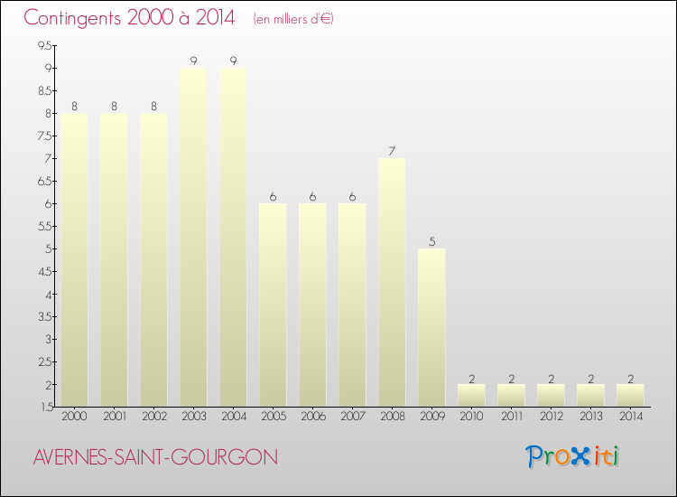 En 2014, à Avernes-Saint-Gourgon, ce budget est en baisse de 3.03 % par rapport à 2013.