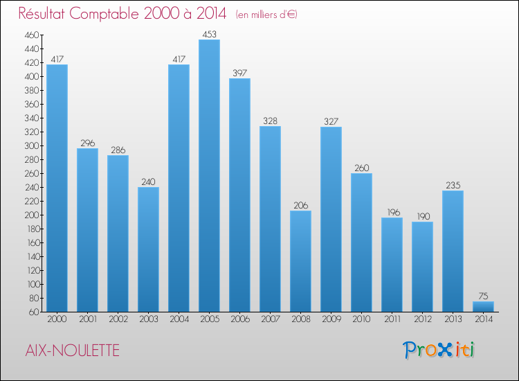 Le résultat comptable de la commune de Aix-Noulette s'établissait ainsi à : + 75 000 € fin 2014.