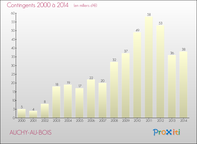 En 2014, à Auchy-au-Bois, ce budget est en augmentation de 2.66 % par rapport à 2013.