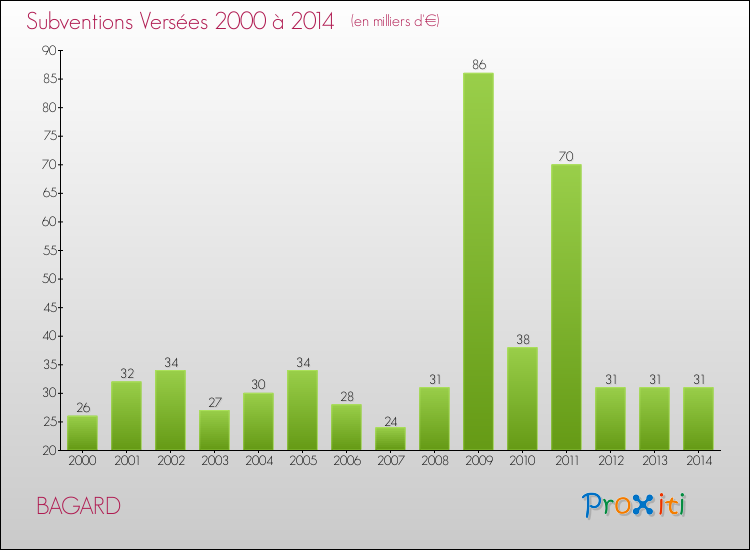 En 2014, à Bagard, ce budget est en baisse de 1.68 % par rapport à 2013.
