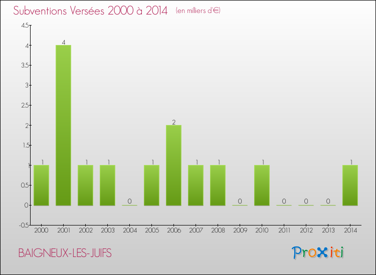 En 2014, à Baigneux-les-Juifs, ce budget est en augmentation de 8.14 % par rapport à 2013.