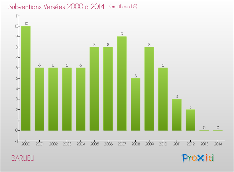 En 2014, à Barlieu, ce budget est en augmentation de 0.3 % par rapport à 2013.