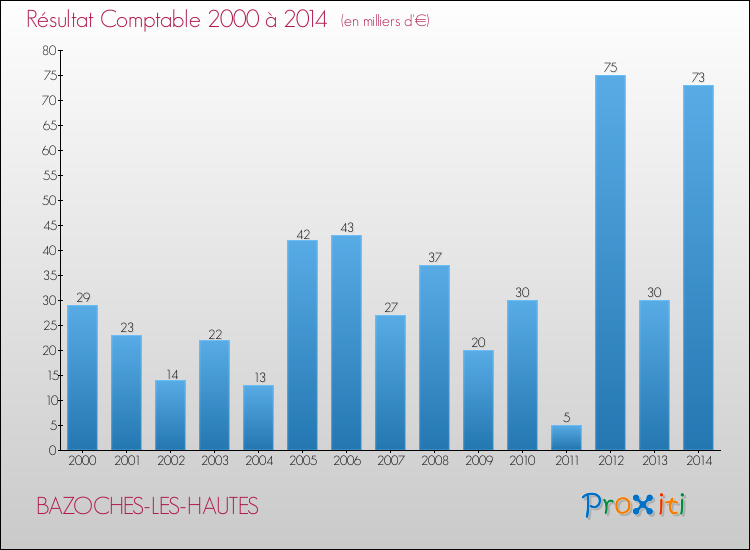 Le résultat comptable de la commune de Bazoches-les-Hautes s'établissait ainsi à : + 73 000 € fin 2014.