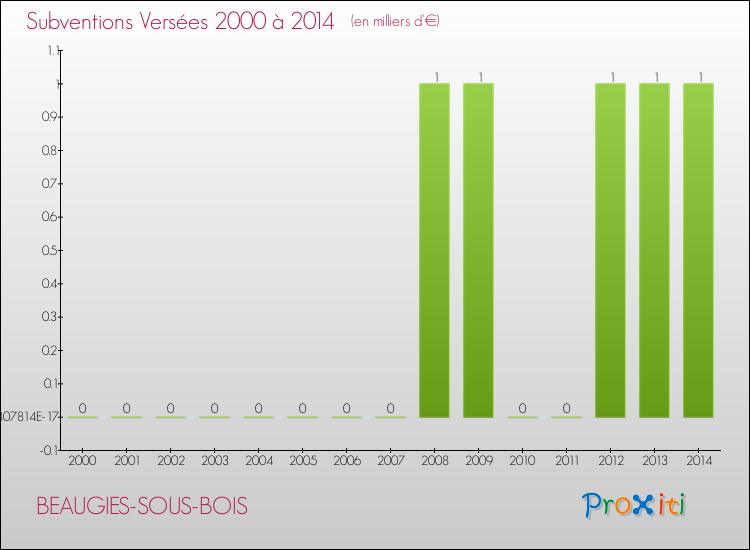 En 2014, à Beaugies-sous-Bois, ce budget est en augmentation de 20.73 % par rapport à 2013.
