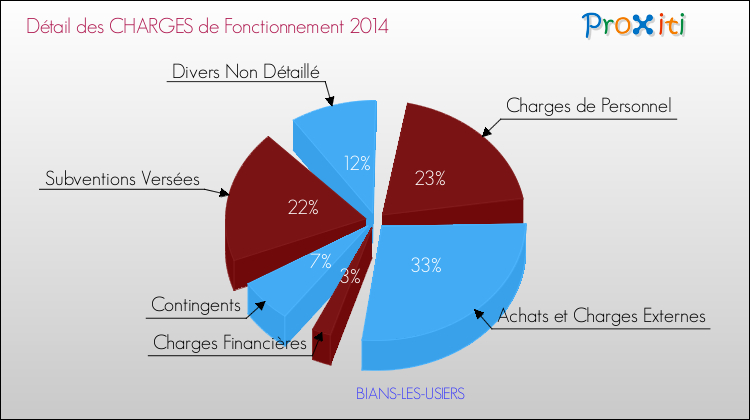 En 2014, les charges de fonctionnement de la commune de Bians-les-Usiers étaient de : 377 000 €