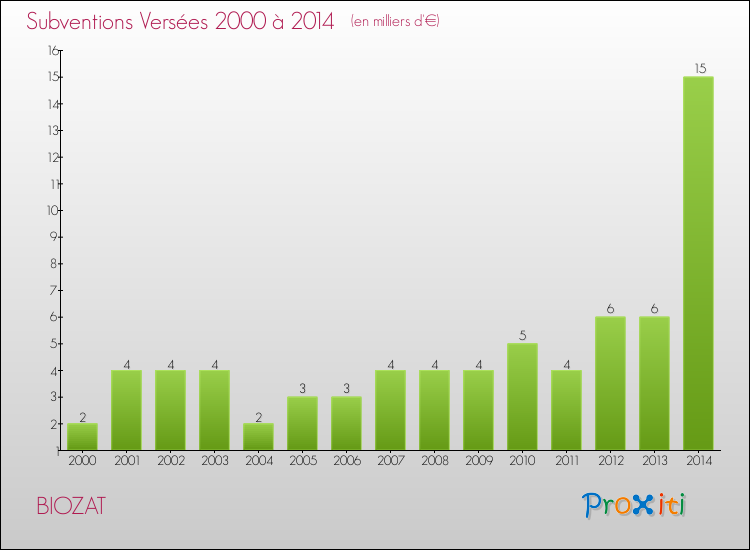 En 2014, à Biozat, ce budget est en augmentation de 7.29 % par rapport à 2013.