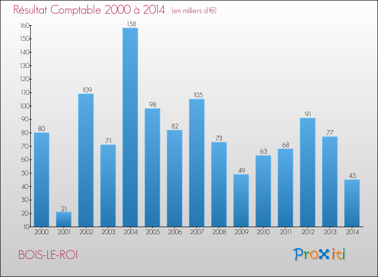 Le résultat comptable de la commune de Bois-le-Roi s'établissait ainsi à : + 45 000 € fin 2014.