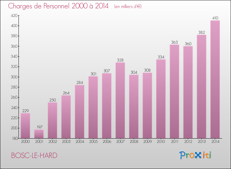 En 2014, à Bosc-le-Hard, ce budget est en baisse de 2.23 % par rapport à 2013.