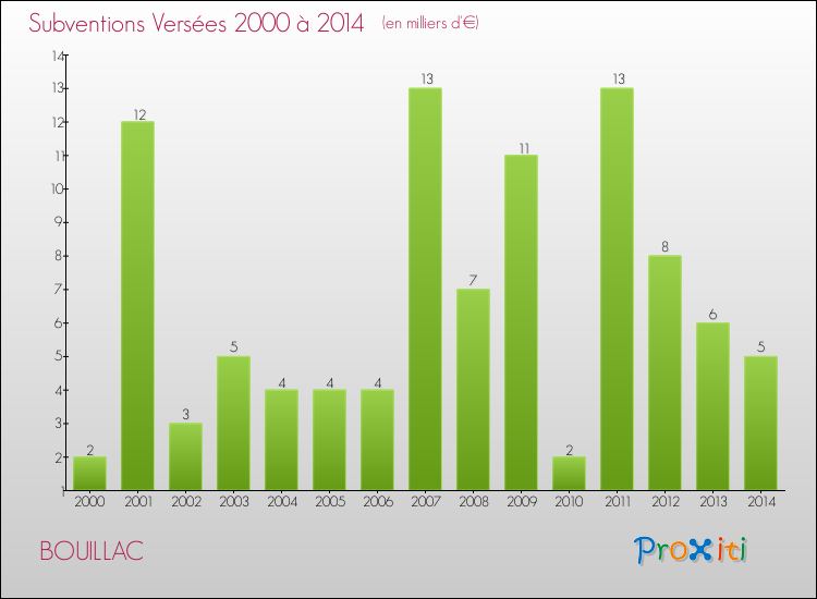 En 2014, à Bouillac, ce budget est en augmentation de 6.64 % par rapport à 2013.
