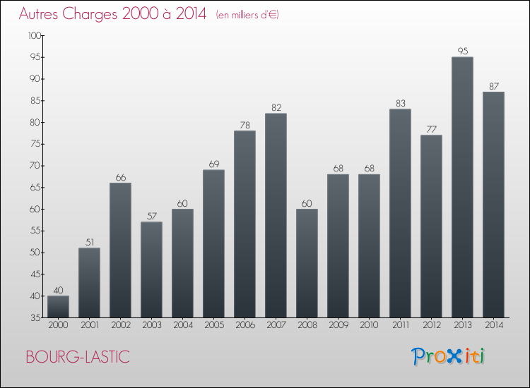 En 2014, à Bourg-Lastic, ce budget est en baisse de 10.86 % par rapport à 2013.
