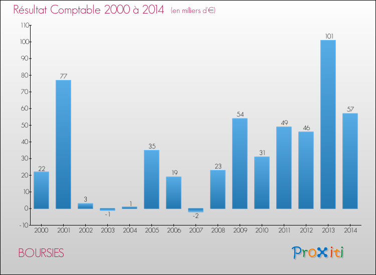 Le résultat comptable de la commune de Boursies s'établissait ainsi à : + 57 000 € fin 2014.