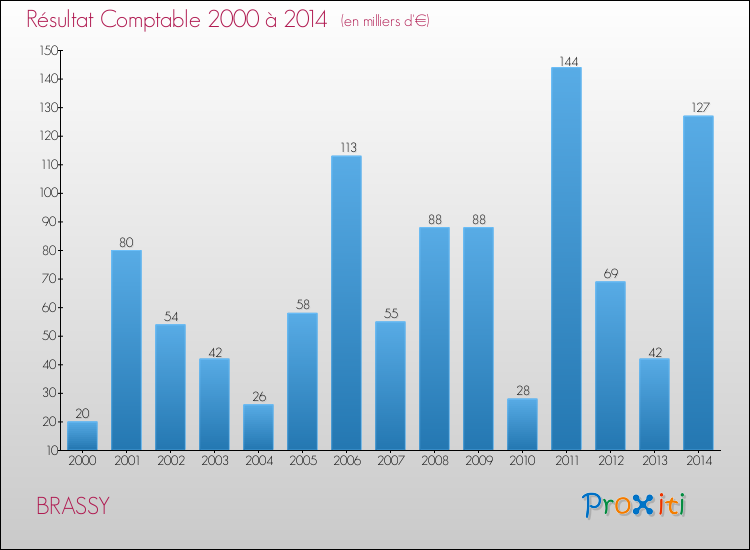 Le résultat comptable de la commune de Brassy s'établissait ainsi à : + 127 000 € fin 2014.