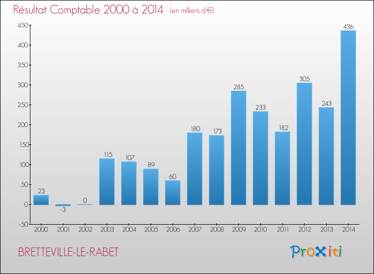 Le résultat comptable de la commune de Bretteville-le-Rabet s'établissait ainsi à : + 436 000 € fin 2014.