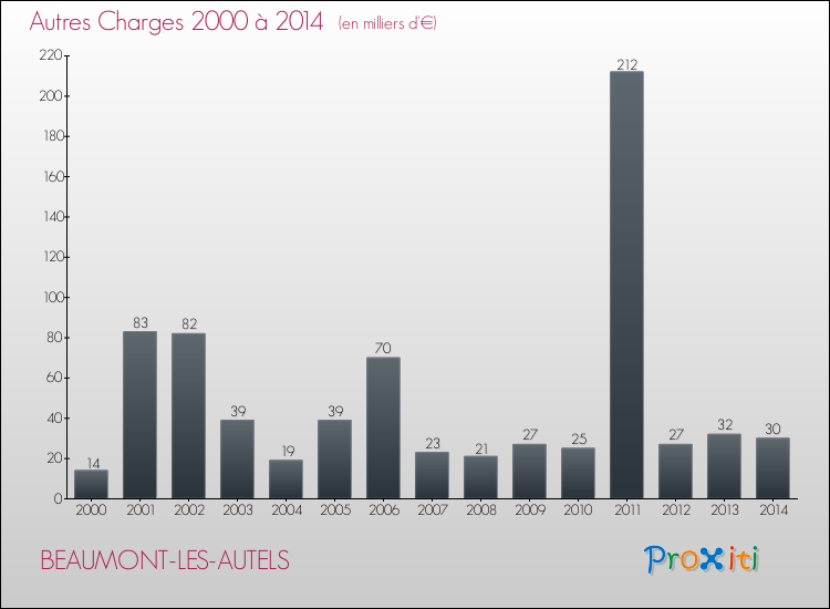 En 2014, à Beaumont-les-Autels, ce budget est en baisse de 17.38 % par rapport à 2013.