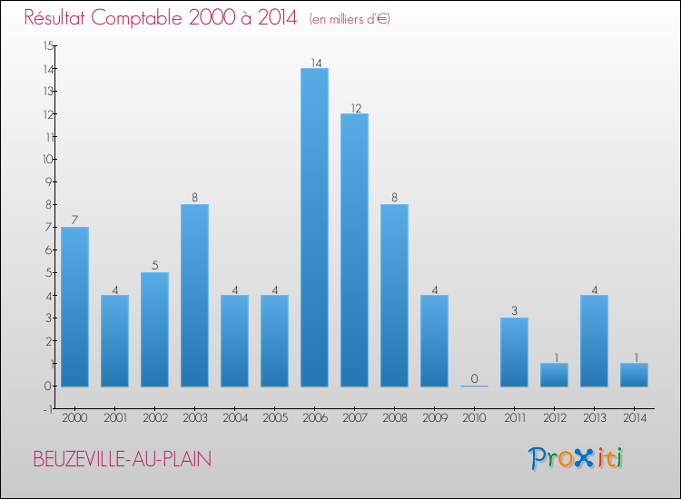 Le résultat comptable de la commune de Beuzeville-au-Plain s'établissait ainsi à : + 1 000 € fin 2014.