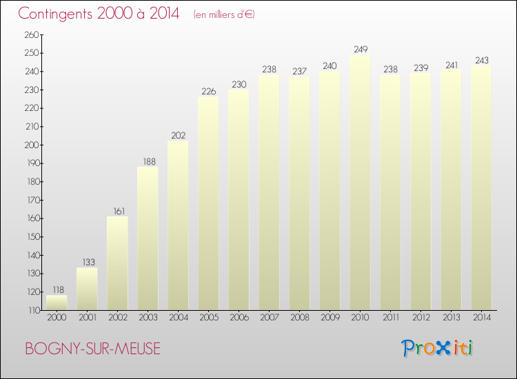 En 2014, à Bogny-sur-Meuse, ce budget est en augmentation de 5.83 % par rapport à 2013.
