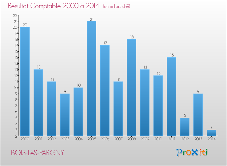 Le résultat comptable de la commune de Bois-lès-Pargny s'établissait ainsi à : + 3 000 € fin 2014.