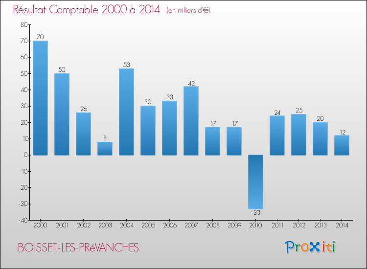Le résultat comptable de la commune de Boisset-les-Prévanches s'établissait ainsi à : + 12 000 € fin 2014.