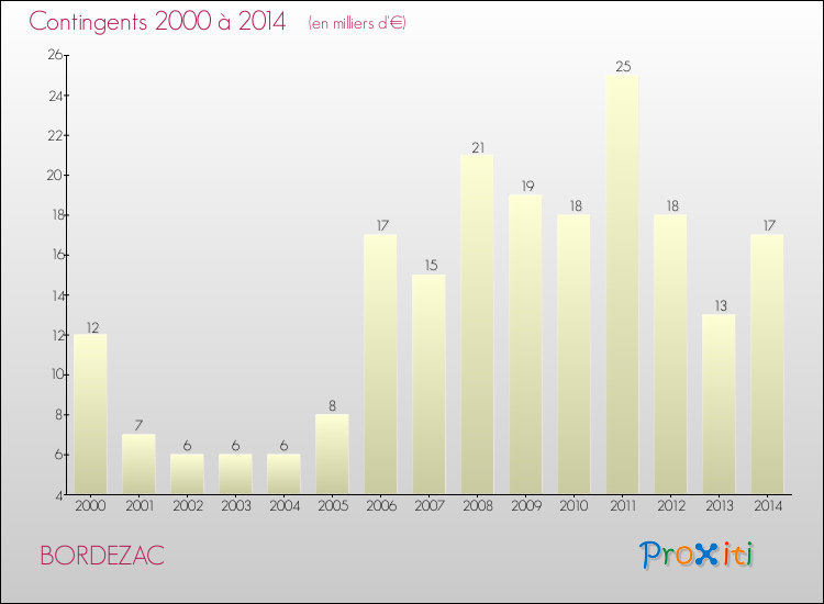 En 2014, à Bordezac, ce budget est en baisse de 1.66 % par rapport à 2013.