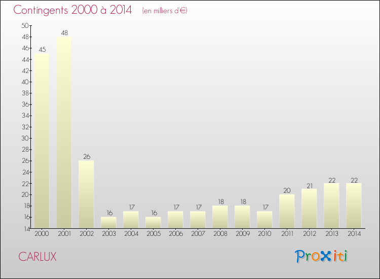 En 2014, à Carlux, ce budget est en baisse de 21.27 % par rapport à 2013.