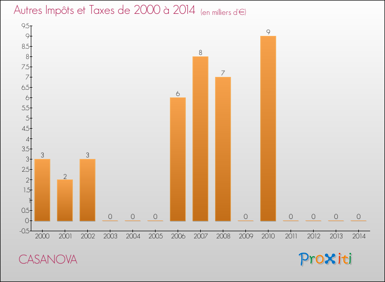 En 2014, à Casanova, ce budget est en baisse de 10.93 % par rapport à 2013.