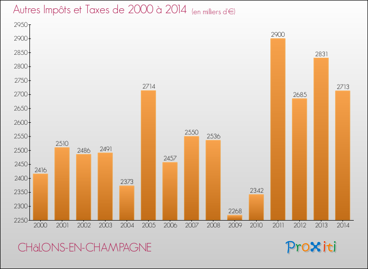 En 2014, à Châlons-en-Champagne, ce budget est en baisse de 1.32 % par rapport à 2013.
