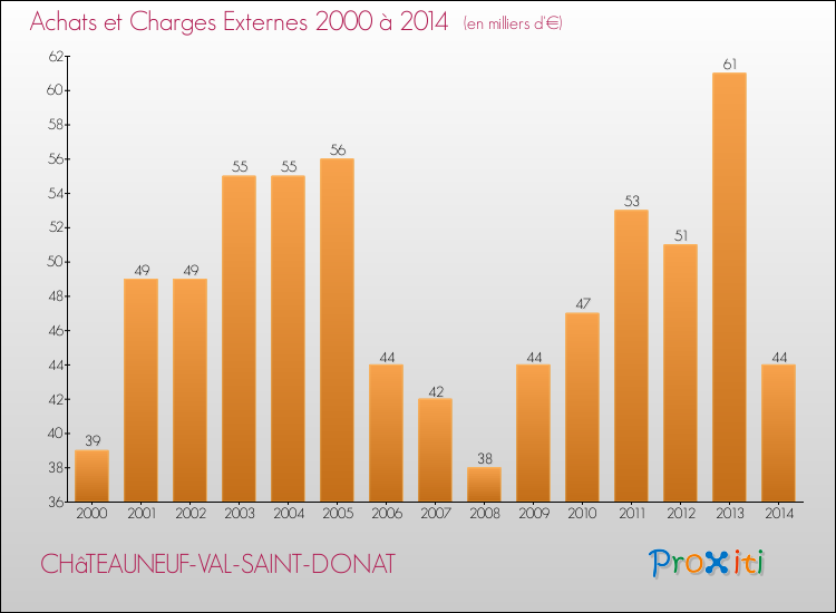 En 2014, à Châteauneuf-Val-Saint-Donat, ce budget est en augmentation de 13.59 % par rapport à 2013.
