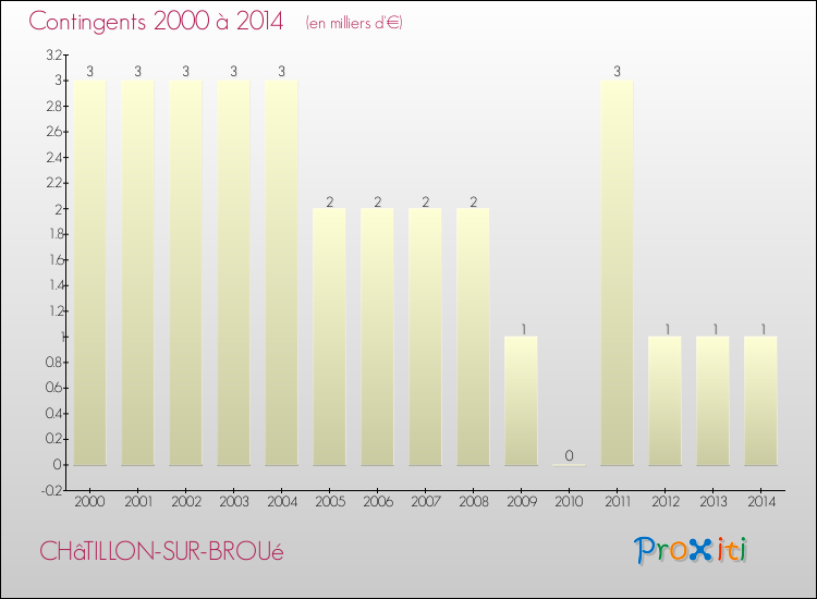 En 2014, à Châtillon-sur-Broué, ce budget est en baisse de 12.86 % par rapport à 2013.