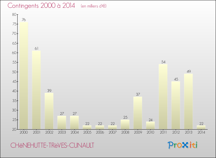 En 2014, à Chênehutte-Trèves-Cunault, ce budget est en augmentation de 0.13 % par rapport à 2013.